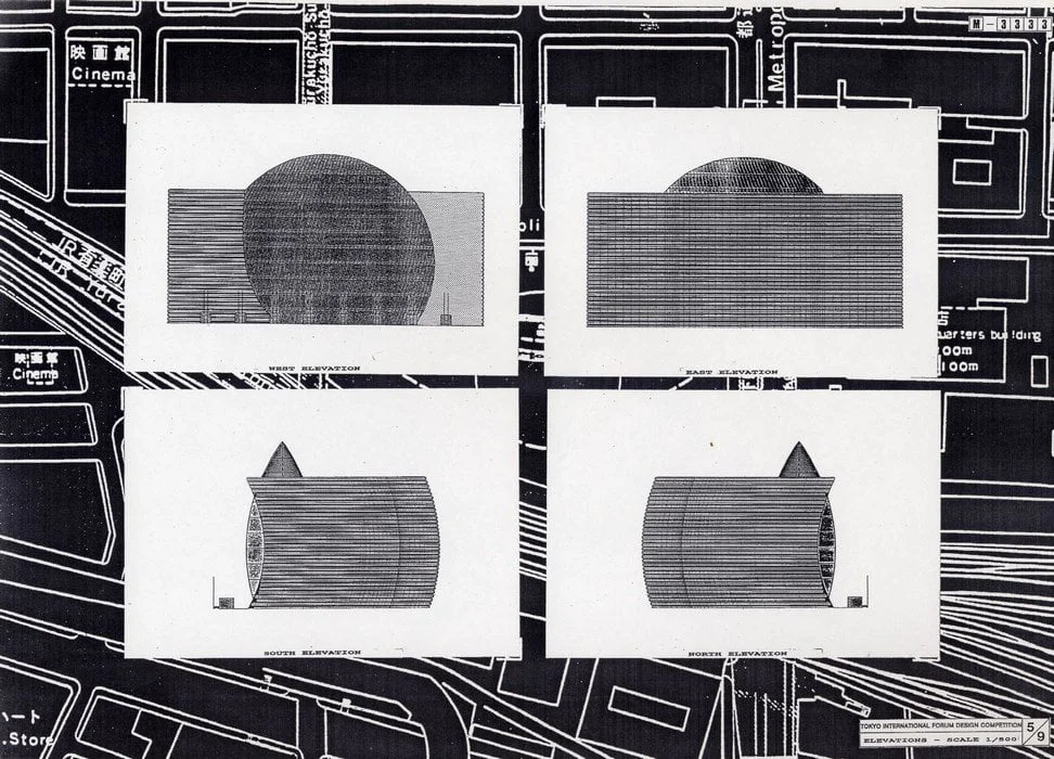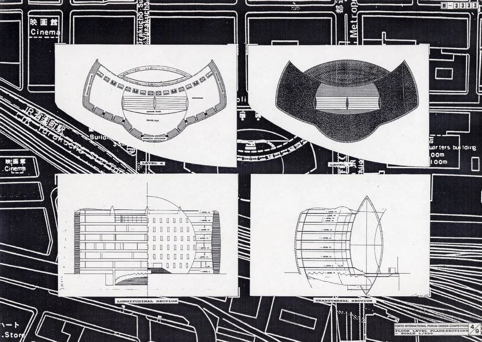Ainsi proposions-nous que le Forum International de Tokyo se dresse au milieu du tumulte, montagne dans la ville, rocher érigé, vivante et sereine image du japon de toujours, emblème du futur.