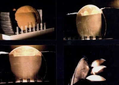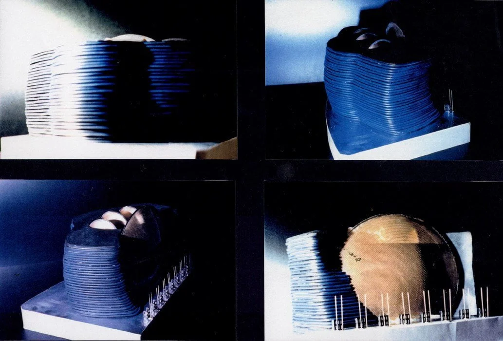 Projeté au centre de Tokyo, dans le contexte de l’époque (avant-gardisme, essor technologique … ) où le Japon était l’image même d’un monde sans borne où les limites du réel s’évanouissent, monde de la relativité, de la simulation, de l’immatériel, sans passé et sans mémoire, il nous semblait que ce projet pouvait représenter un point d’ancrage au milieu de ce maelström qui préfigurait notre modernité.