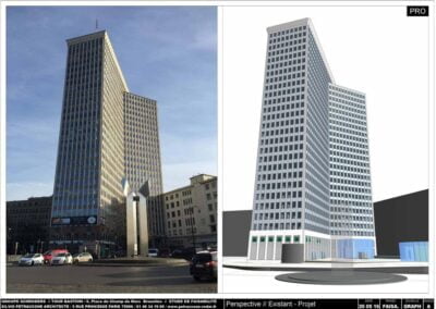 L’ensemble de ces interventions, précisément localisées et pesées, devraient être de nature à insuffler à la tour Bastion une image contemporaine, à moderniser avec discrétion le « Sky Line » de Bruxelles, et à favoriser la vie du square Bastion.